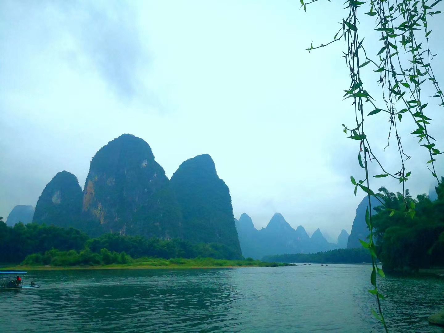 如果说桂林是一个生命体,那么漓江绝对是桂林的灵魂。小学课本里那一句桂林山水甲天下,让我们魂牵梦萦,而今梦想终于得以实现。第二天我们赶个大早,乘竹筏游览美丽的漓江,沿路奇峰美景,奇峰倒影、碧水青山、翠鸟鸣唱、渔翁闲钓,许多山岩形状独特给人遐想,在这样美丽的山水间穿行,大家呼吸着清新的空气,尽情释放自己。
