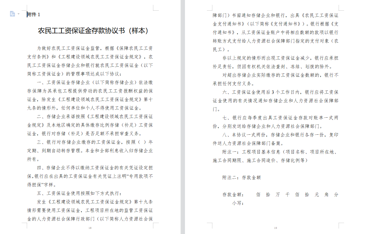 附件:1.农民工工资保证金存款协议书(样本)