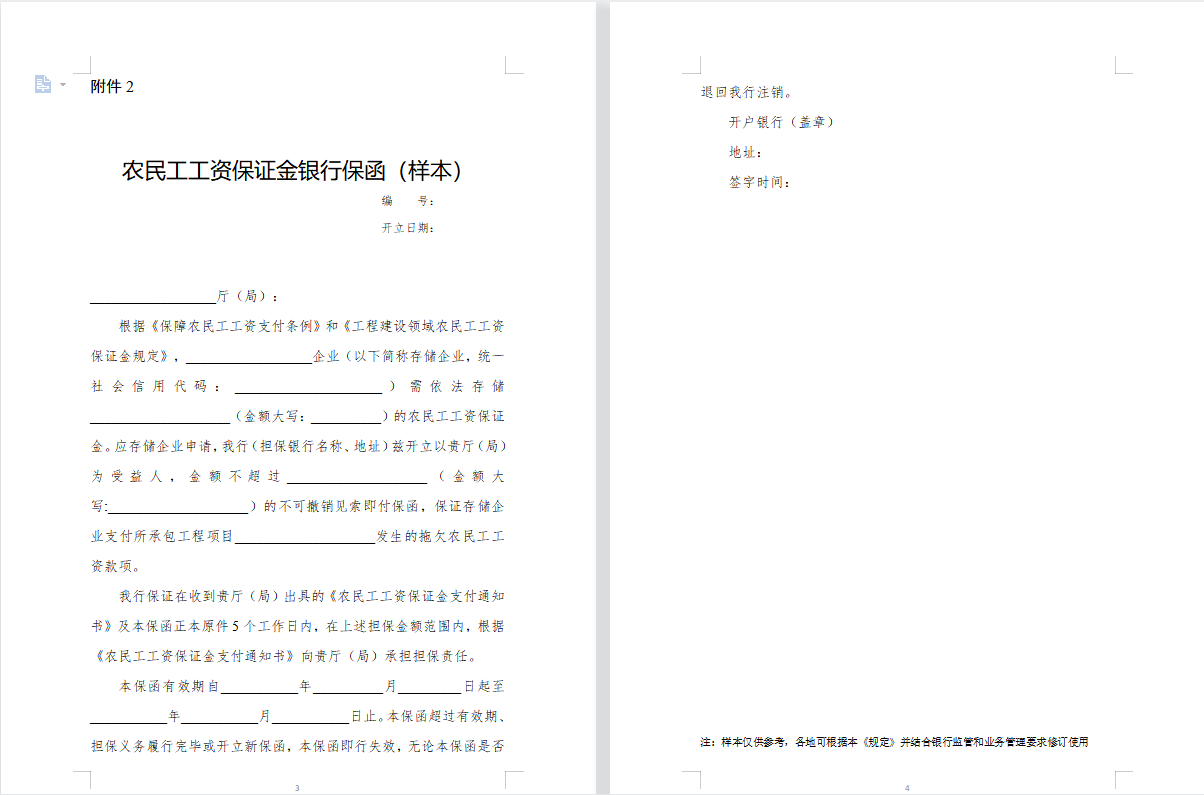 2.农民工工资保证金银行保函(样本)