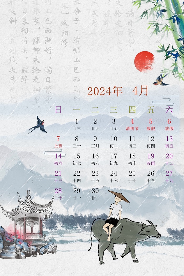 根据《国务院办公厅关于2024年节假日安排的通知》公司2024年清明节放假事宜如下: 放假时间:2024年4月4日(周四)至2024年4月6日(周六)放假,共3天,4月7日(周日)正常上班。