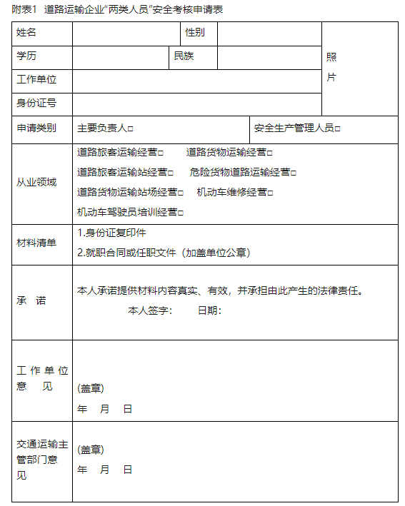 附表1 道路运输企业“两类人员”安全考核申请表姓名